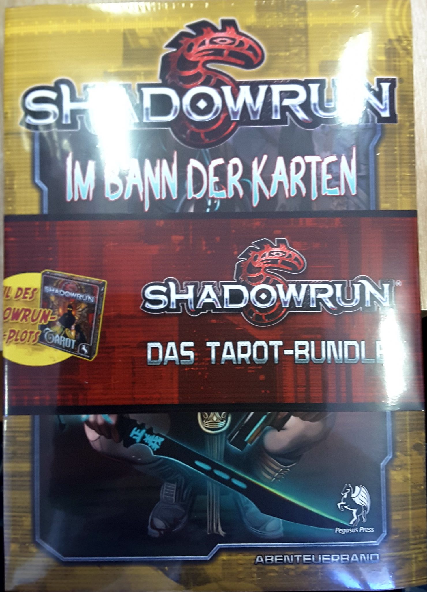 Das Tarot Bundle für Shadowrun enthält vier neue Produkte. Das Buch der Verlorenen (Quellenband) Im Bann der Karten (Abenteuerband) Die Karten des Schicksals (Kurzgeschichten Sammelband) Tarot (Karten Set) Selbstverständlich gibt