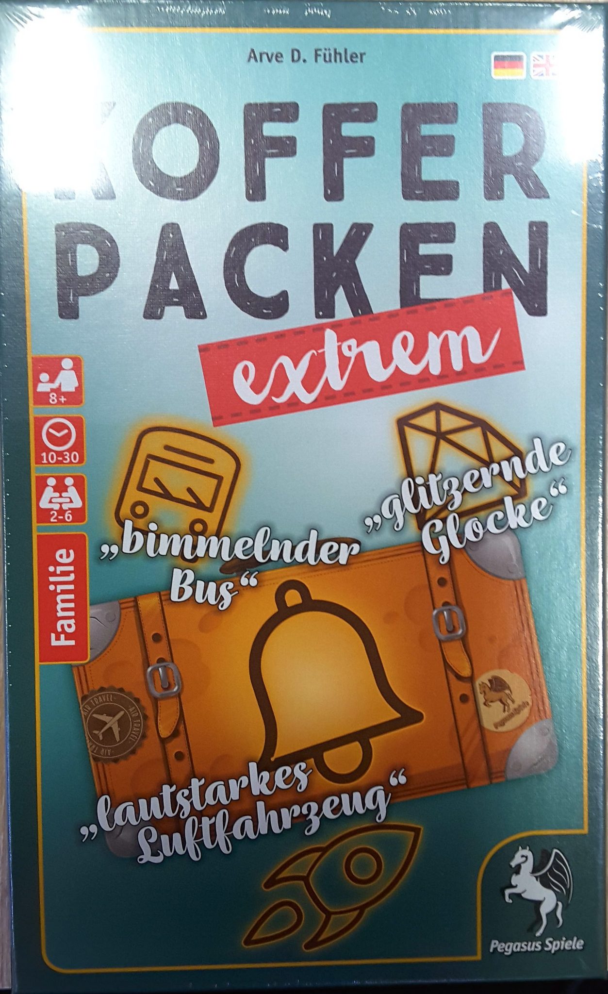 Der Klassiker, mit neuen, kreativen Wortschöpfungen für Extrapunkte. Koffer packen Spieler Alter Sprache Kategorien 2-6 8+ Deutsch Wortspiel Gedächtnis Karten